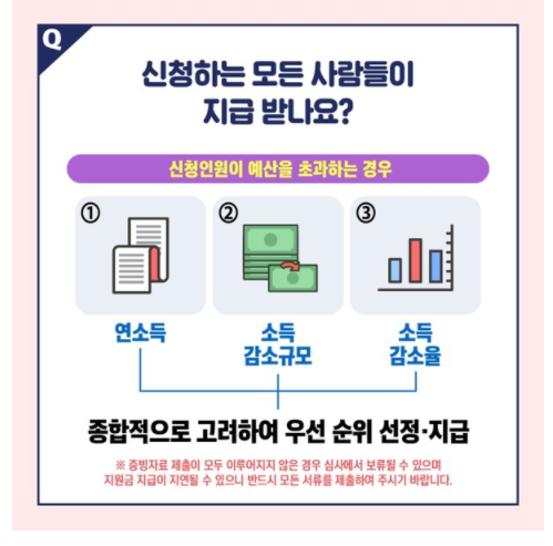 우선순위에 따라 선정및 지급 한다고 합니다.