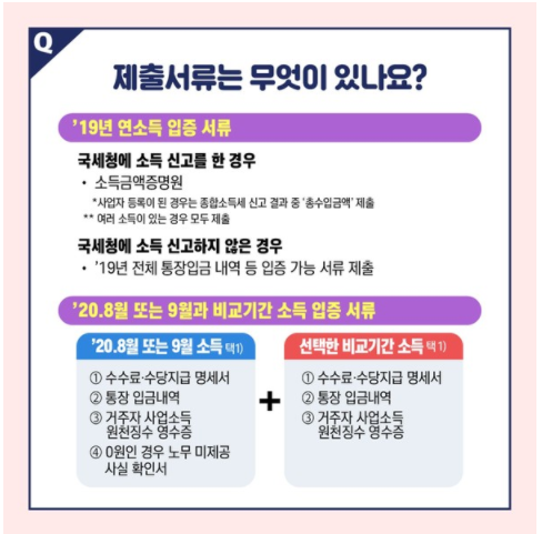 또한 소득감소 요건기간중 하나를 택하여 제출합니다.