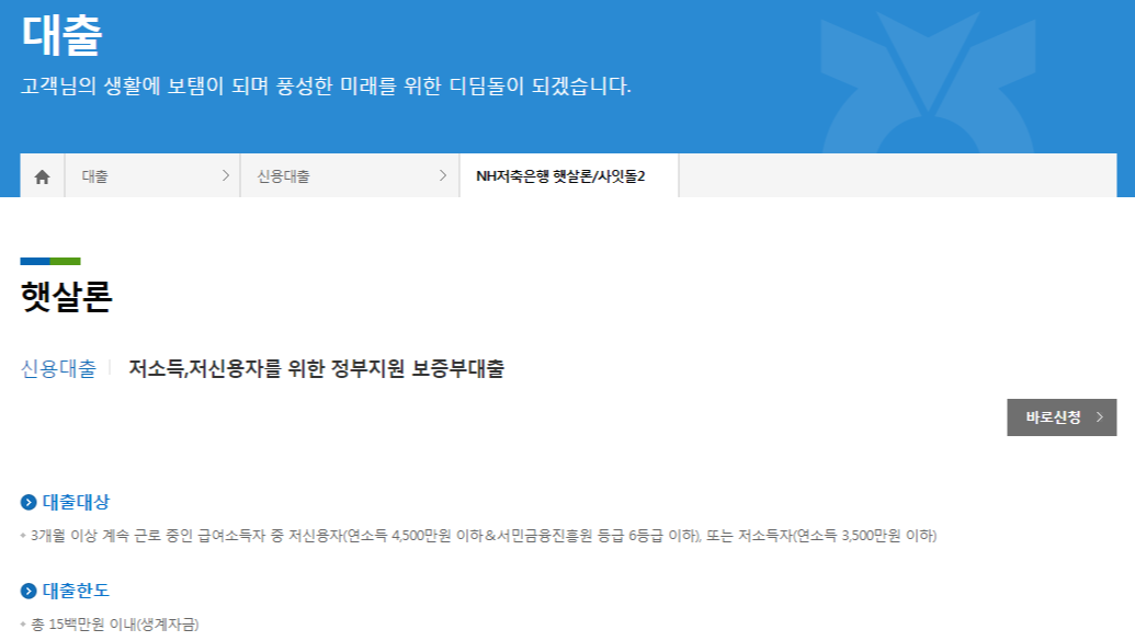 대출신청 | NH저축은행 햇살론 | 대출상품 | NH저축은행