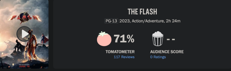 아마 그래서인지 로튼 토마토와 메타스코어 점수가 비교적 낮고, 긍정적인 점수를 준 평론가조차도 에즈라 밀러 이슈와 별개로 영화 자체만을 평가했다는 코멘트를 달았습니다.