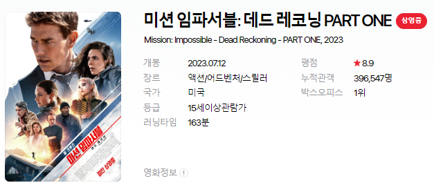[미션 임파서블: 데드 레코닝 PART ONE ] 쿠키영상 유무/별점(씨네21, 다음)/해외반응(로튼토마토, 메타크리틱) 총정리!! (미션임파서블7) 본문