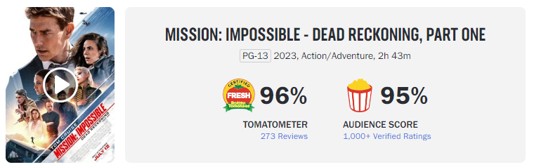 [미션 임파서블: 데드 레코닝 PART ONE ] 쿠키영상 유무/별점(씨네21, 다음)/해외반응(로튼토마토, 메타크리틱) 총정리!! (미션임파서블7)